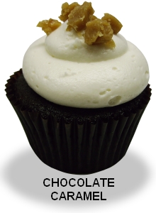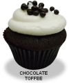 Chocolate cupcake filled with caramel sauce then topped with buttercream and english toffee bits