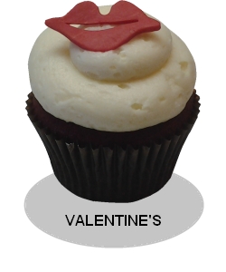 A Valentine's Day Cupcake for your "Cupcake". Vanilla , chocolate, or red velvet cupcake with buttercream topped with a great big kiss Available 1 February - 29 February or by special order