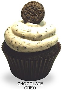 Chocolate cupcake topped with an oreo infused vanilla buttercream and a mini oreo cookie