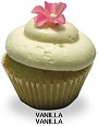 Vanilla Cherry Cupcake topped with vanilla buttercream frosting and a cherry blossom