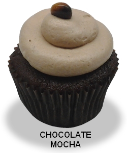 Chocolate cupcake with mocha buttercream frosting, topped with a tri-colour Callebaut chocolate ball
