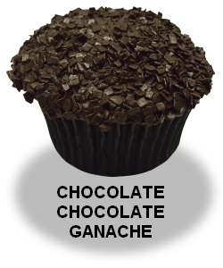 Chocolate cupcake filled with chocolate ganache, topped with more chocolate ganache and french cut chocolate sprinkles