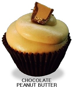 Chocolate cupcake filled with peanut butter mousse topped with chocolate ganache and peanuts