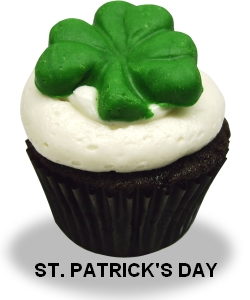For the Irish in all of us. Chocolate or Vanilla cupcake with green or white buttercream frosting topped with a lucky chocolate shamrock.