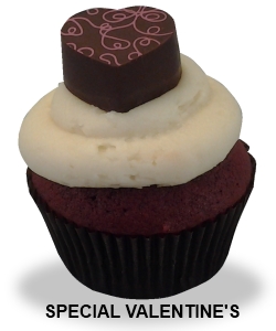 A Valentine's Day Cupcake for your "Cupcake". Vanilla , chocolate, or red velvet cupcake with buttercream frosting topped with a handmade truffle Available 1 February - 29 February or by special order