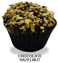 Chocolate cupcake topped with chocolate ganche and carmelized hazelnuts
