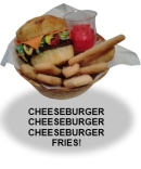 Wow! Everything but the paper and plastic cup are edible! A vanillia cupcake bun, moist brownie burger topped with, modeling chocolate cheese, coconut lettuce, royal icing mustard and ketchup. Fries are sugar cookies and the basket is a sugar cone.
