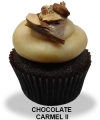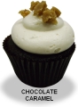 Chocolate cupcake filled with caramel sauce then topped with buttercream and english toffee bits