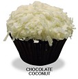 Chocolate cupcake with with vanilla buttercream frosting topped with flaked coconut
