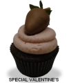 A Valentine's Day Cupcake for your "Cupcake". Vanilla , chocolate, or red velvet cupcake with strawberry buttercream topped with a fresh Callebaut chocolate (dark or milk) covered strawberry Available 1 February - 29 February or by special order