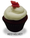 Classic US southern red velvet cupcake, chocolate ganache filling, topped with vanilla buttercream frosting and french cut chocolate sprinkles